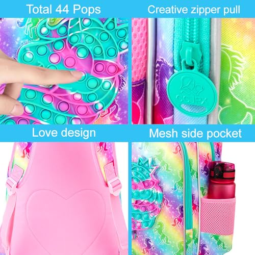 • Eye-Catching Bookbag for Girls: With upgraded UV printing, the unicorn pattern on the front pocket is very glittery. This girls unicorn backpack is the ideal companion for your little one to grow up with.