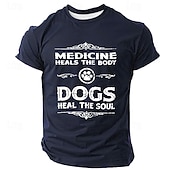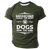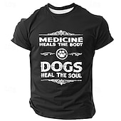 Highlights [Fabric] : This t-shirt is crafted from high-quality polyester, offering a soft, breathable, and micro-elastic fabric that's perfect for maximum comfort throughout the spring and summer seasons. [Fit] : Designed with a regular fit, this classic tee features a ribbed crew neck to provide a timeless and versatile silhouette, making it suitable for various casual occasions. [Design Highlights] : The standout feature of this t-shirt is its 3D print design on the front, showcasing a humorous and heartfelt slogan, "Medicine Heals The Body, Dogs Heal The Soul," accompanied by a decorative paw graphic. This playful and sentimental design is ideal for dog lovers and those with a sense of humor. [Occasions] : This versatile t-shirt suits a variety of occasions, from casual street outings to relaxed indoor settings or outdoor sports activities. It's an excellent choice for those who prefer a retro vintage, street style look. [Size Range] : Available in a range of sizes from S to 3XL, this t-shirt ensures a comfortable fit for adults looking for both style and comfort.