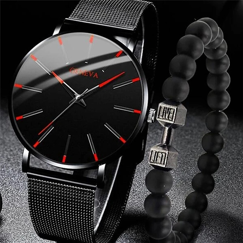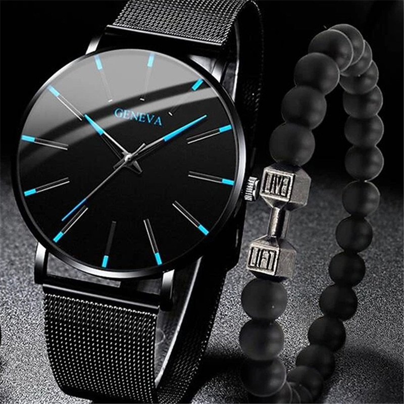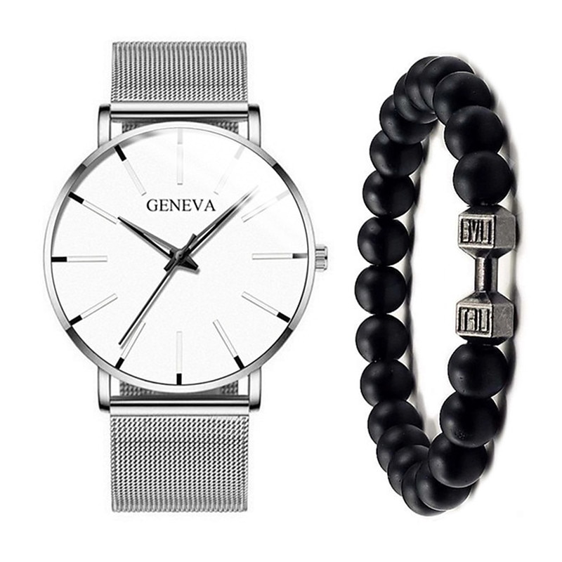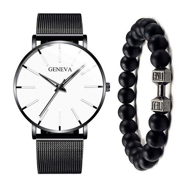 GENEVA Quartz Watch for Men Stylish Steampunk Casual Analog Quartz Wristwatch with Bracelet Set Waterproof PU Leather Watch 22
