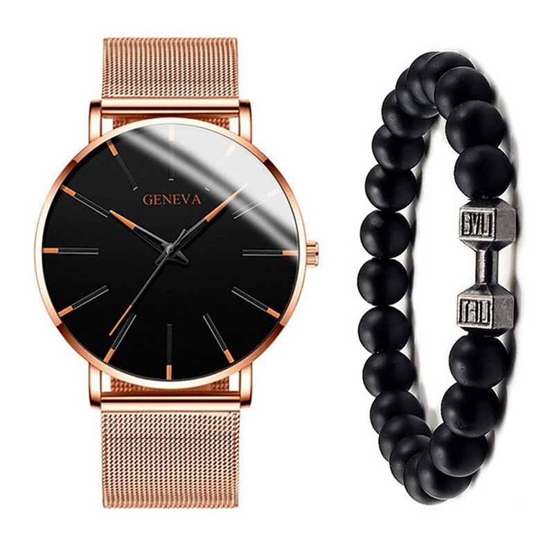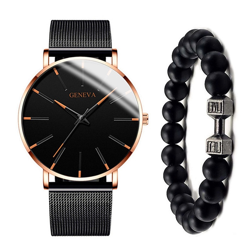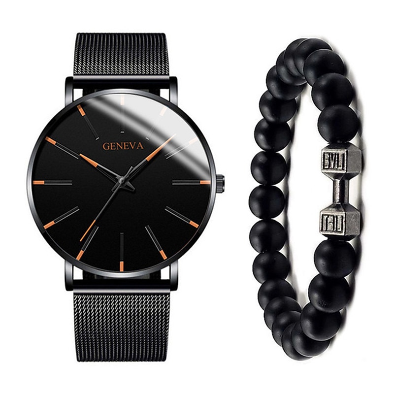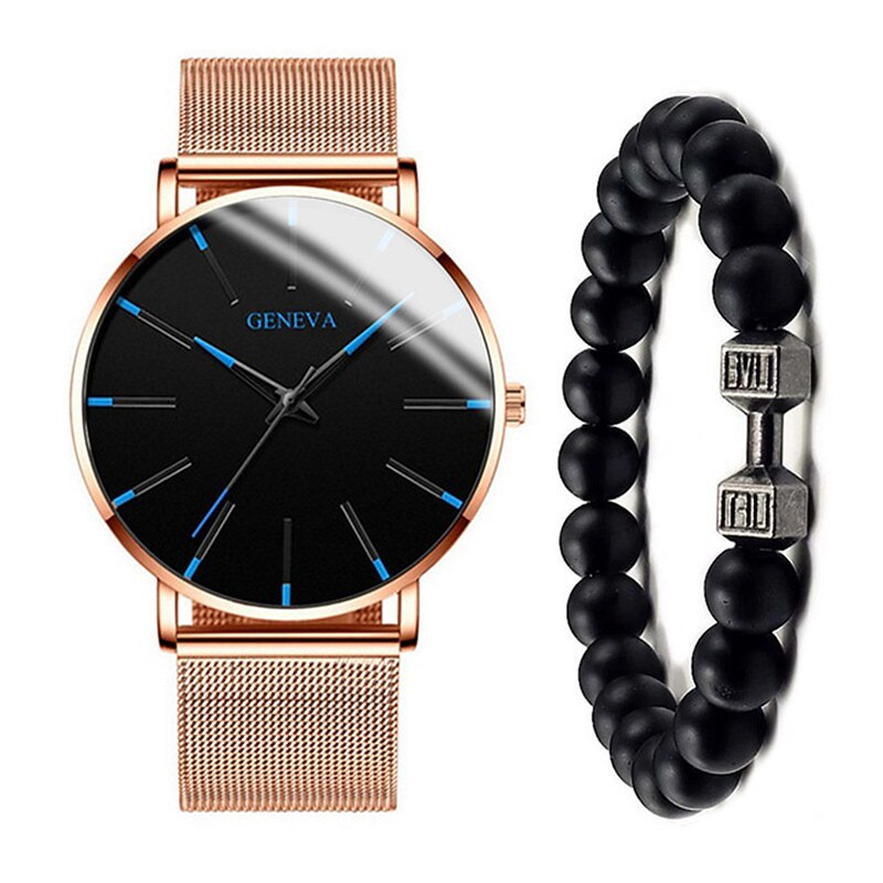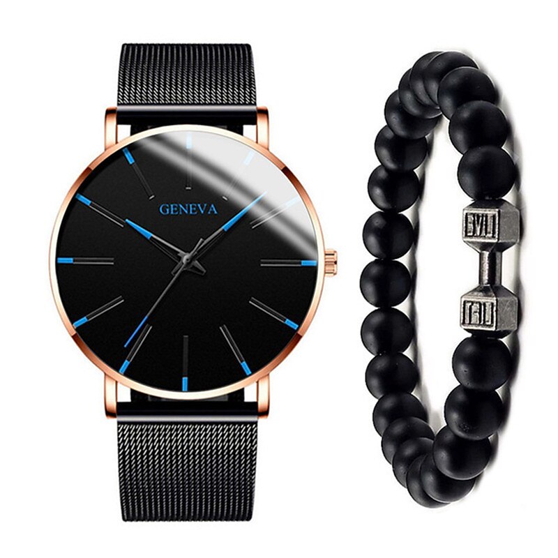 GENEVA Quartz Watch for Men Stylish Steampunk Casual Analog Quartz Wristwatch with Bracelet Set Waterproof PU Leather Watch 10