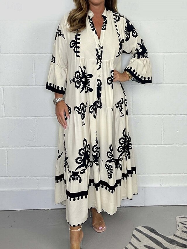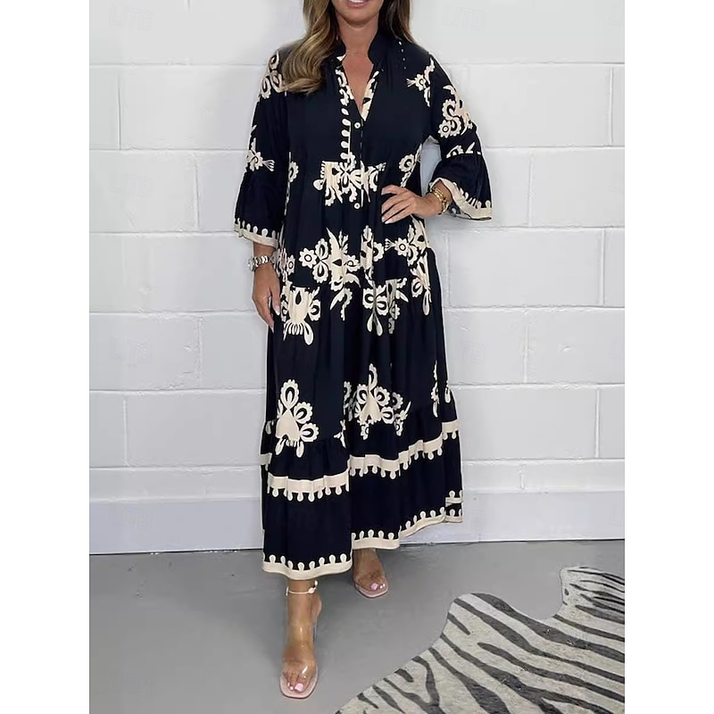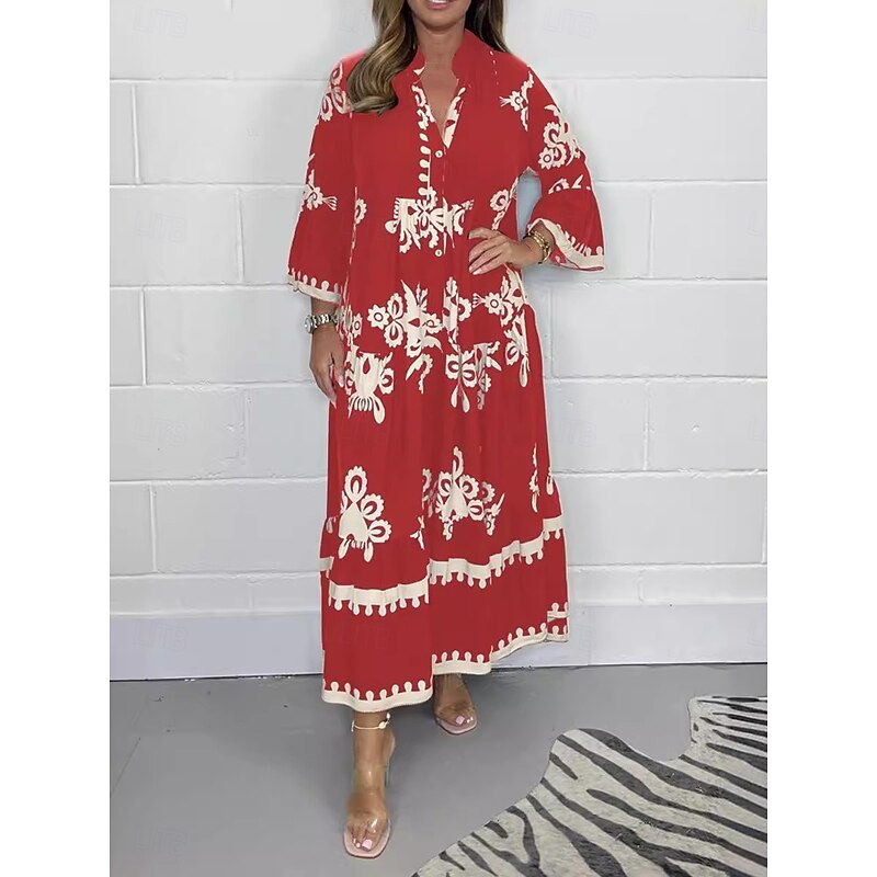 HOT ! Women's Maxi Dress Casual Dress Boho Chic Dresses Boho Dress Bohemia Stylish Casual Vacation Daily Beach Loose Fit Graphic 3/4 Length Sleeve V Neck Black Red Green Beige Summer Spring