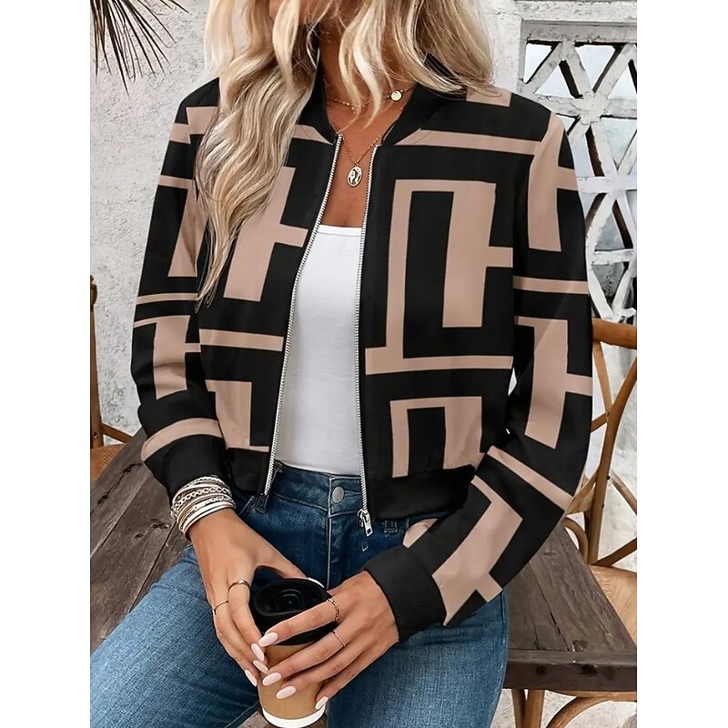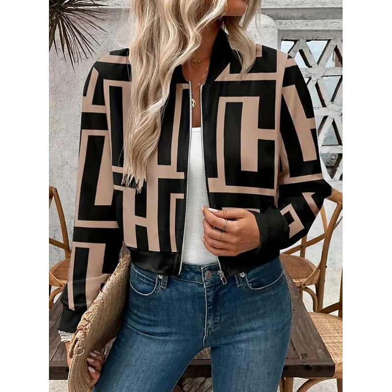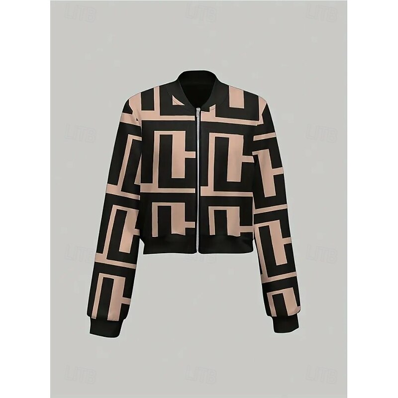 More information about Women's Coat Warm Lightweight Print Elegant Vintage Fashion Retro Geometric Outdoor Vacation Home Street Regular Stand Collar Regular Fit Long Sleeve Outerwear Black Brown Fall Winter
