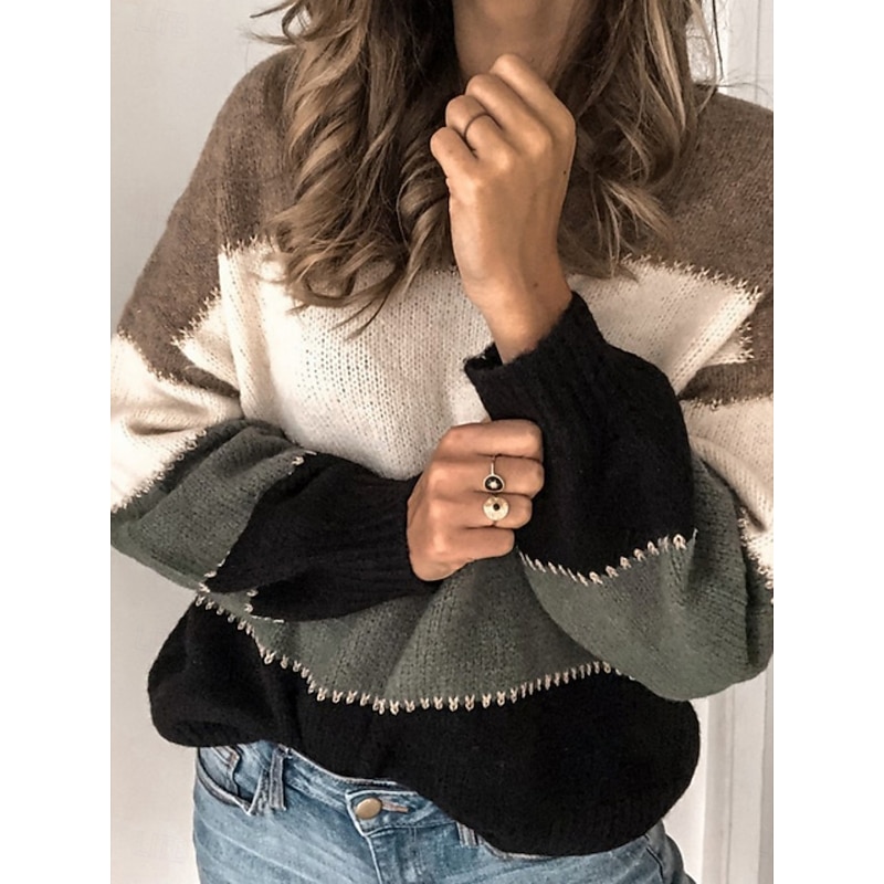 HOT ! Women's Sweater Casual Soft Striped Ribbed Crew Neck Knitted Long Sleeve Regular Tops Knit Outdoor Daily Weekend Black Yellow Fall Winter