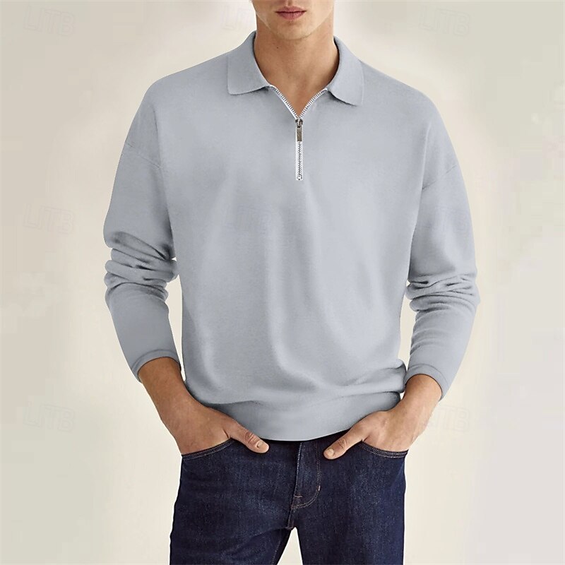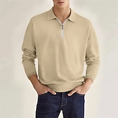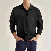 More information about Men's Quarter Zip Polo Golf Shirt Daily Holiday Lapel Long Sleeve Fashion Modern Plain Spring & Fall Regular Fit Black White Pink Wine Navy Blue Royal Blue Quarter Zip Polo