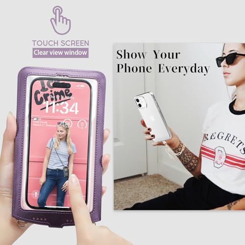HOT ! Cell Phone Purse Small Crossbody Phone Bag for Women Men Leather Mini Shoulder Bag Wallet with Strap Lanyard and Camera Window Card Slots Strap for All Smartphones iPhone 16 Samsung up to 7.5" Puple