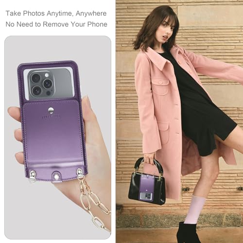 Cell Phone Purse Small Crossbody Phone Bag for Women Men Leather Mini Shoulder Bag Wallet with Strap Lanyard and Camera Window Card Slots Strap for All Smartphones iPhone 16 Samsung up to 7.5" Puple 4
