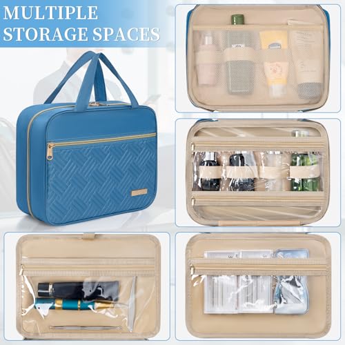 Travel Toiletry Bag - Spacious Toiletry Bag with Hanging Hook, Water Resistant Makeup Bag for Women & Men, Travel Essentials (Medium-Blue) 1