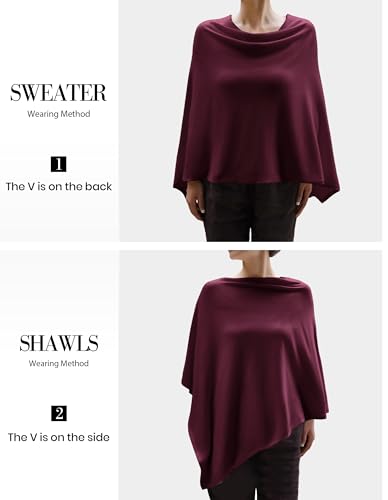 PULI Women Soft Knit Poncho Lightweight Travel Shawl Cape Versatile Ponchos Sweater 4