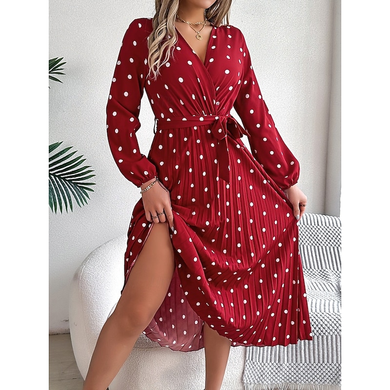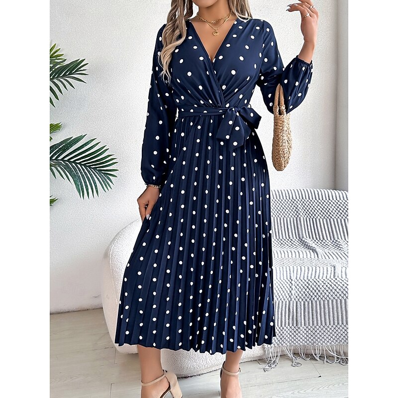 More information about Women's Maxi Dress Casual Dress A Line Dress Stylish Casual Vacation Daily Regular Fit Polka Dot Long Sleeve V Neck Wine Navy Blue Spring Fall