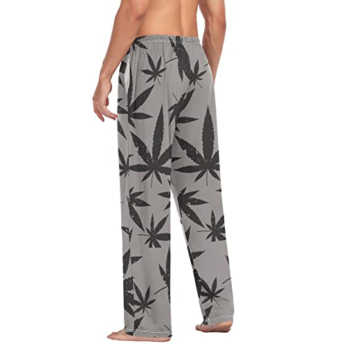 HOT ! Black Marijuana on Grey Men's Pajama Pants Sleepwear Lounge Pajama Bottoms