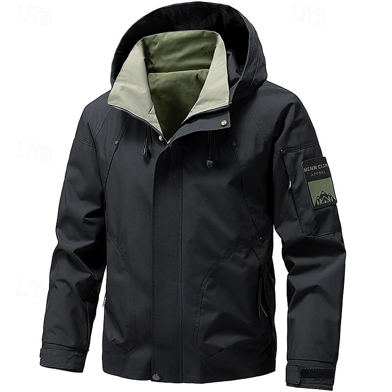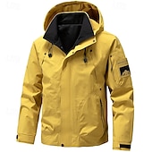 More information about Men's Sport Coat Raincoat Hiking Jacket Outdoor Casual Waterproof Windbreaker Zipper Pocket Spring & Fall Solid Color Fashion Streetwear Hooded Regular Black White Yellow Green Jacket