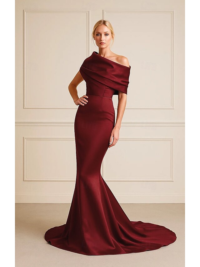$164.99 - Burgundy Mermaid / Trumpet Evening Gown Elegant Formal Dress Formal Wedding Sweep / Brush Train Sleeveless Off Shoulder Dress Stretch Satin with Pleats 2025 2025. Shop for cheap Mermaid Evening Dresses online? Buy at lightinthebox.com on sale today!