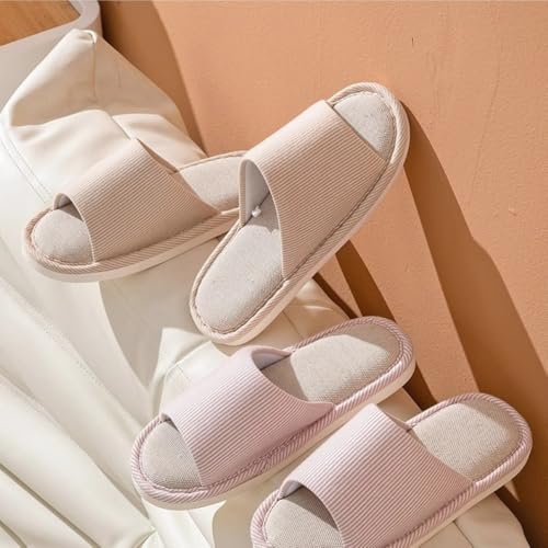 HOT ! Linen Cotton Slippers for Women - Quick Dry Open Toe Slides, Soft Breathable Non-Slip for Bedroom Shower, Cozy Holiday Indoor Gifts for Couples & Parents