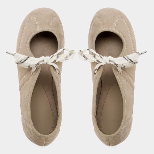 Women's Ballet Flats for Women with Bow, Comfortable Round Toe with Cross Straps, Slip On Mary Jane Ballerina Flats Shoes 5