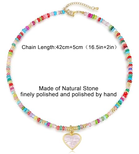 • -MATERIALS-: Heart choker chain necklace, the chain made with natural stones, the necklace is durable and long-lasting.14K Gold heart pendant using real gold plating, inlaid with natural shells,the surface is finely polished, shining brightly.