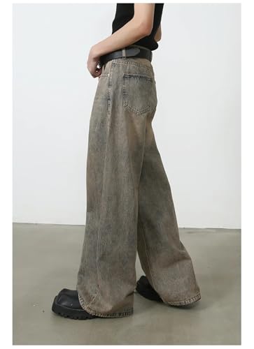 Men's Loose Vintage Draping Straight Jeans, Men's Casual Street Style Denim Pants with Pockets Men and Women 1