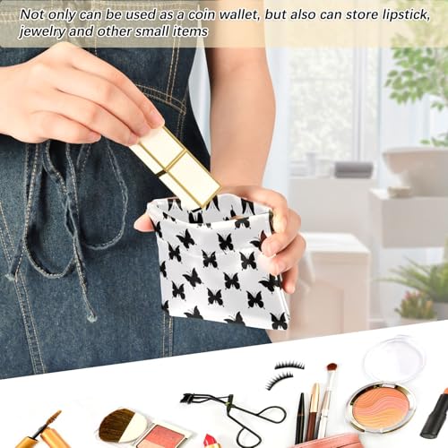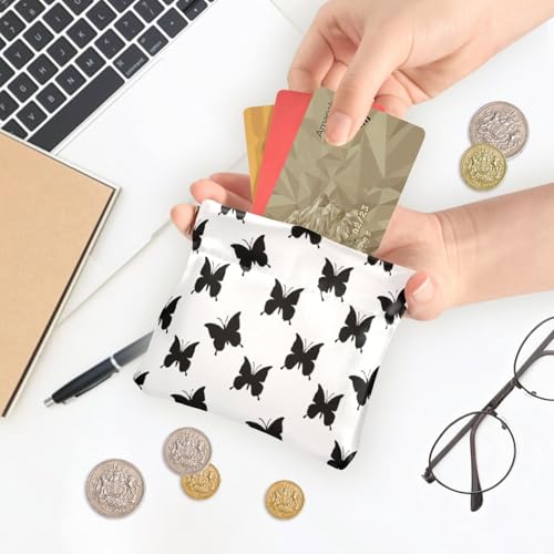 Black Butterfly Silhouette Coin Purse Leather Pouch Change Purse, Squeeze Coin Pouch for Cards, Keys & Lipsticks, Unisex 7