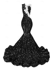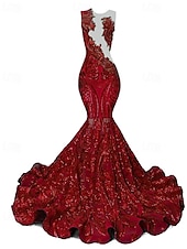 More information about Mermaid Sequin Prom Dresses Elegant Dress Engagement Prom Court Train Sleeveless Jewel Neck African American with Appliques Masquerade Dress