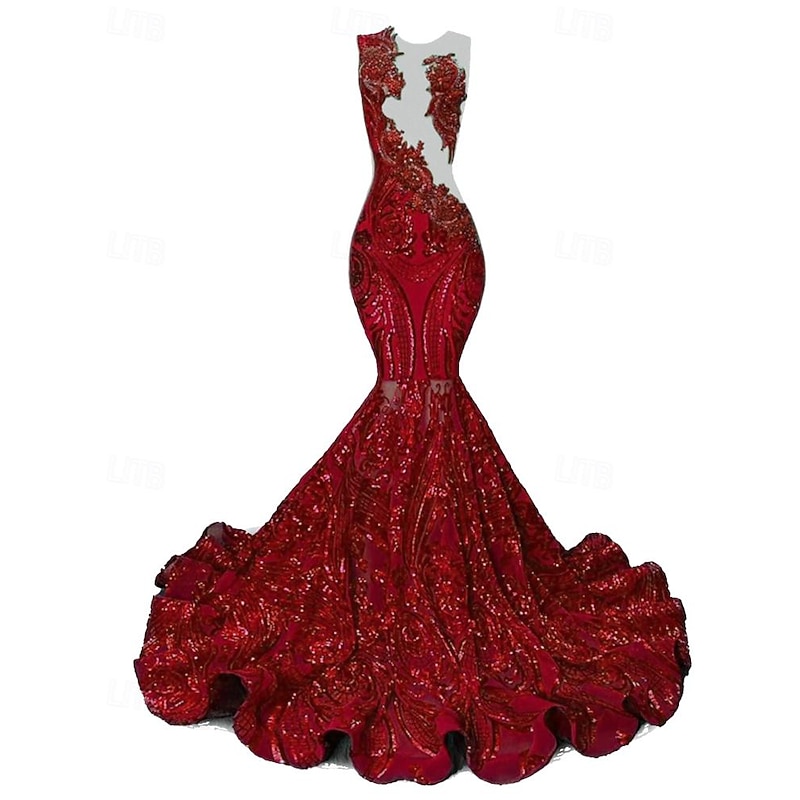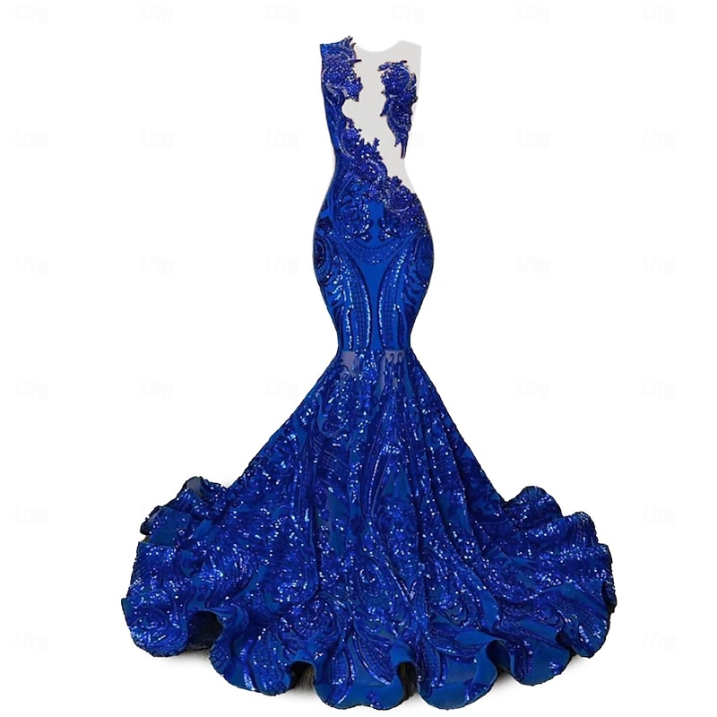 Highlights [Fabric & Style] This elegant prom dress features a stunning mermaid silhouette crafted from high-quality sequined fabric, designed to enhance the body's natural curves. The shimmering fabric creates a glamorous, eye-catching effect, perfect for making a bold statement. [Design Highlights] The dress showcases an exquisite jewel neckline adorned with appliques and sequins, adding a touch of sophistication and elegance. The bodice is fitted beautifully, transitioning seamlessly into a dramatic flared skirt with a voluminous court train. The sleeveless design and illusion panel provide a modern yet elegant look. [Occasions] Ideal for formal events such as proms, engagements, and red-carpet occasions. This dress is designed for those special moments that require a timeless, unforgettable appearance. [Size Information] Available in a variety of sizes ranging from US 0 to US 26W, as well as custom measurements for a perfect fit. The dress is thoughtfully designed to cater to diverse body shapes and sizes. [Care Tips] Professional dry cleaning is recommended. The delicate appliques and sequins are handmade, which may result in slight variations, making each piece unique. Colors may vary slightly due to different monitor settings.