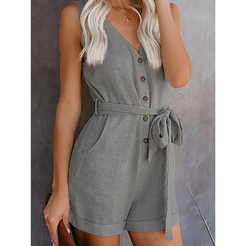 More information about Women's Jumpsuit Sleeveless V-Neck Button Front Tie Waist Solid Color Linen-Like Casual Elegant Summer Spring One-Piece Outfit