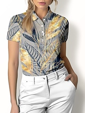 HOT ! Women's Golf Polo Shirt Navy Blue Short Sleeve Sun Protection Top Leaf Ladies Golf Attire Clothes Outfits Wear Apparel
