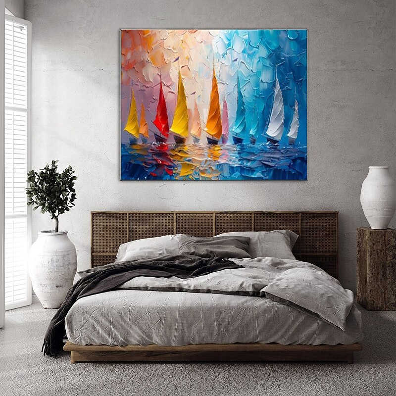 Handmade Oil PaintingCanvasWall Art DecorationAbstract Knife PaintingSea View Warm ColorsFor Home Decor Rolled Frameless Unstressed Painting 9