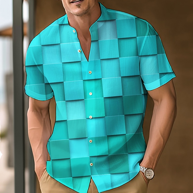 More information about Men's Plaid / Check Geometric Pattern Geometry Shirt Button Up Shirt Short Sleeve Fashion Designer Casual Vacation Street Daily Spring & Summer Stand Collar Print Blue-Green Red Blue Orange Green