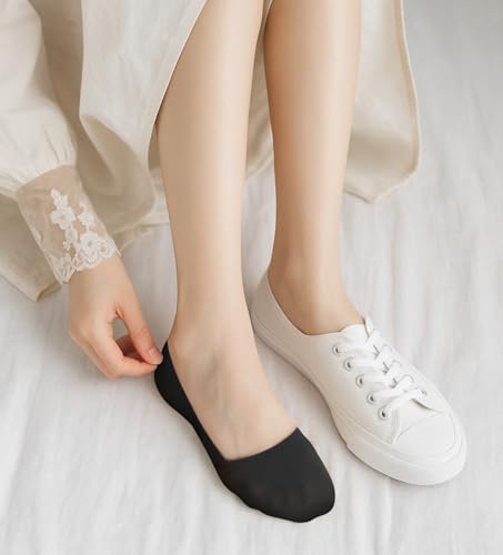 5 Pack Invisible Socks for Women Non Slip Low Cut Invisible Liner Footies Thin Silk Socks for Flats Loafers Lightweight Low Cut Liner Non Slip Hidden for Women [3nude+2black] 6