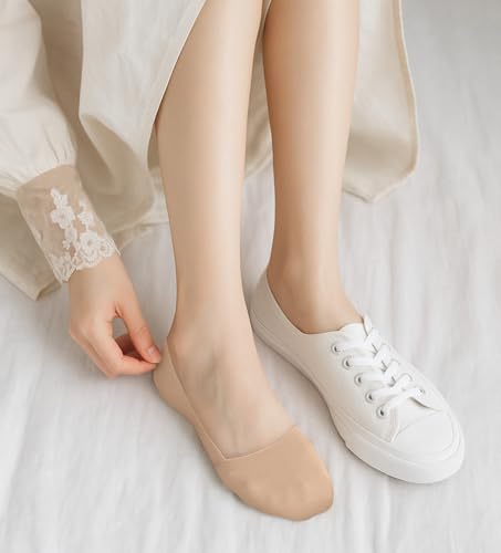 5 Pack Invisible Socks for Women Non Slip Low Cut Invisible Liner Footies Thin Silk Socks for Flats Loafers Lightweight Low Cut Liner Non Slip Hidden for Women [3nude+2black] 7