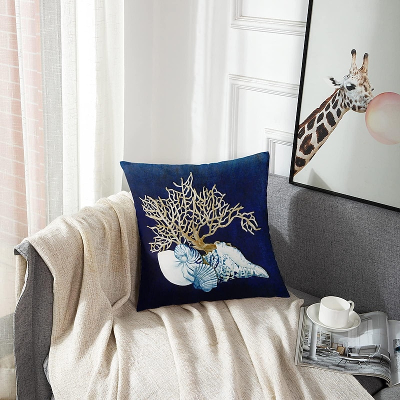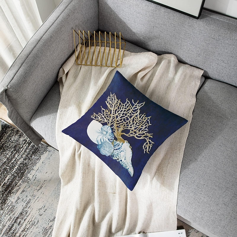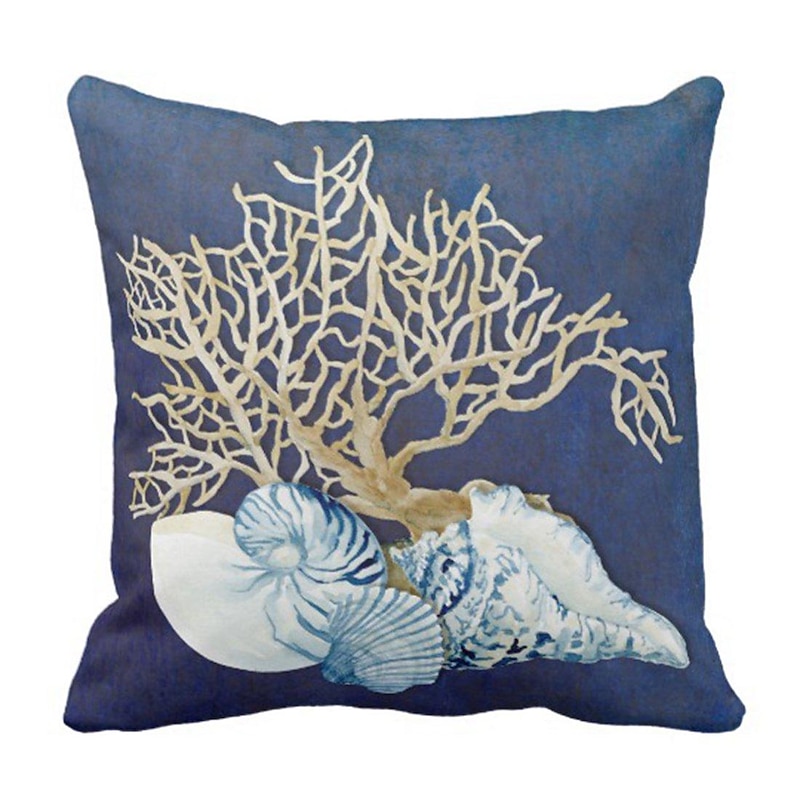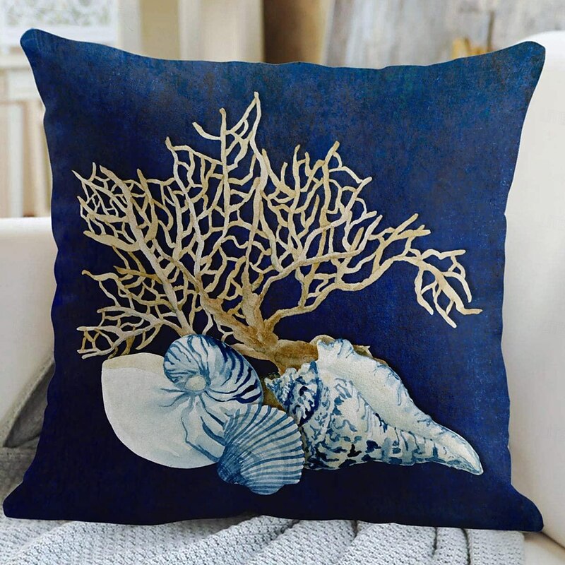Blue Seashore Coral Double Side Pillow Cover 1PC Soft Decorative Square Cushion Case Pillowcase for Bedroom Livingroom Sofa Couch Chair