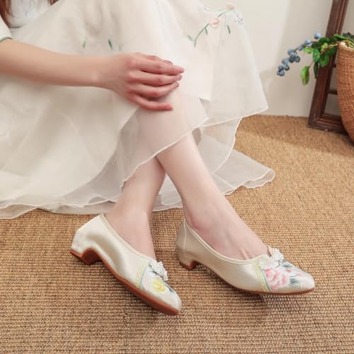 Women's Retro Classic Ballet Flats Shoes Pointed Toe Low Heel Mary Jane Shoes Handmade Floral Embroidered Shoes for Women Cheongsam Shoes 6