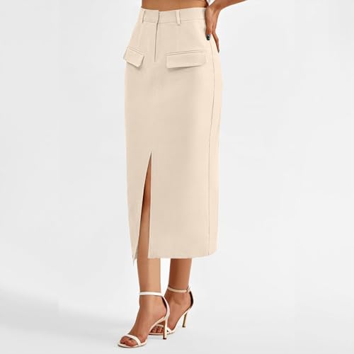 HOT ! Women High Waisted Cargo Midi Pencil Skirt Trendy Dressy Summer Casual Split Front Business Work Long Skirts