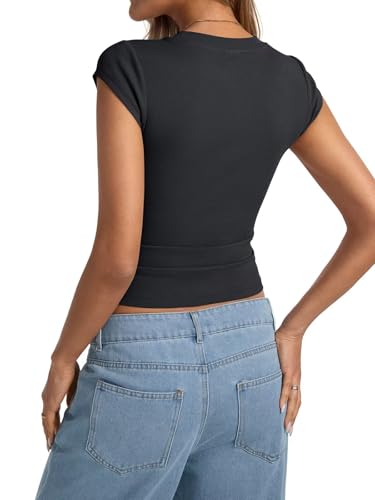 More information about Womens Cap Sleeve Tops Summer Crew Neck Short Sleeve Shirts Slim Fit Basic Ribbed Tops Y2K 2025 Going Out Crop