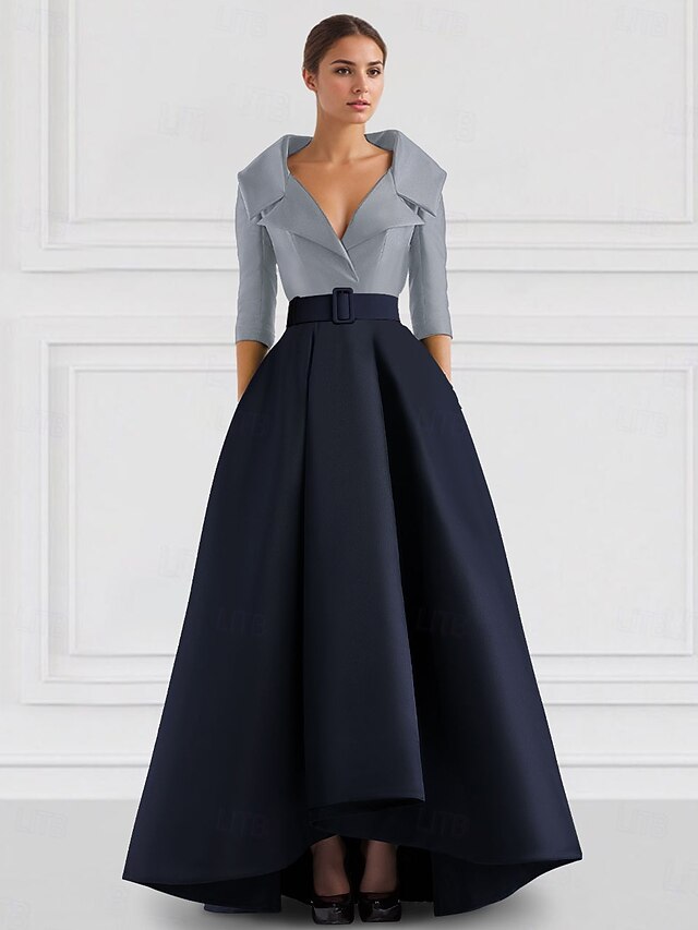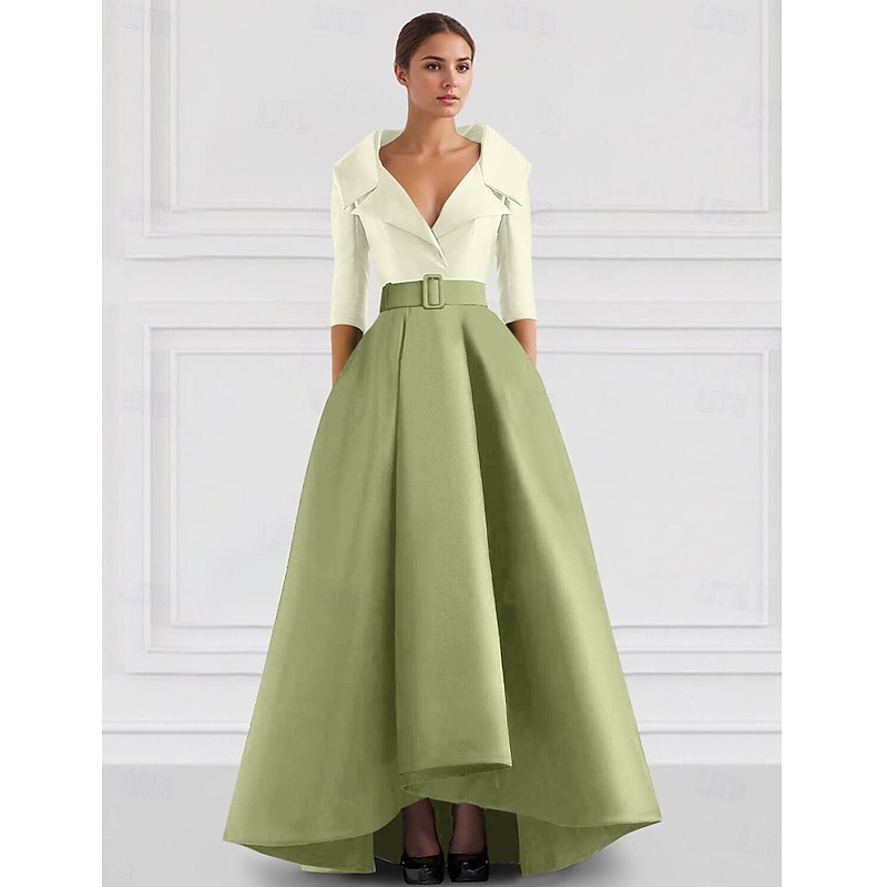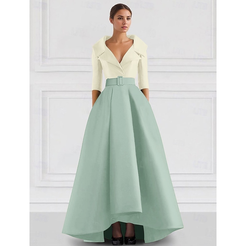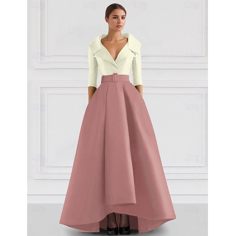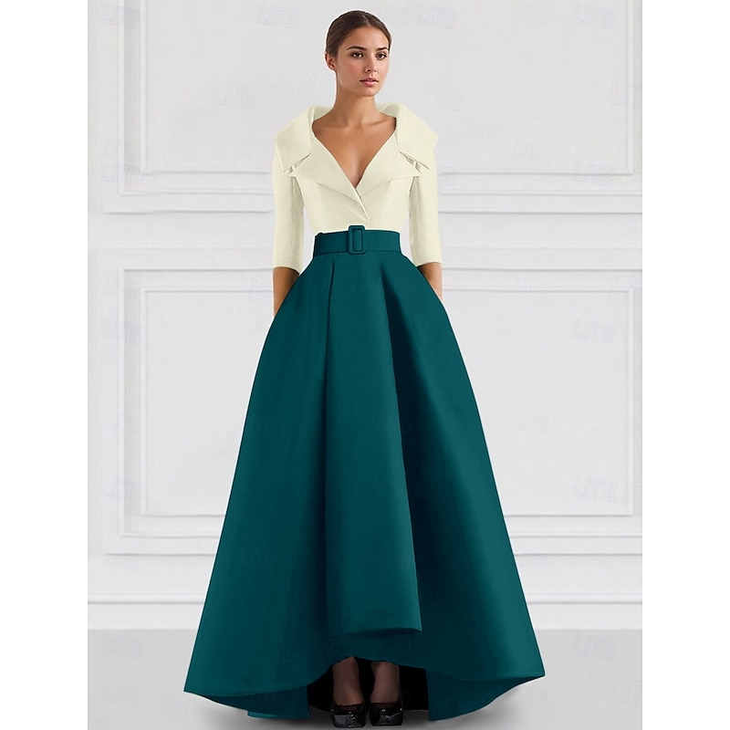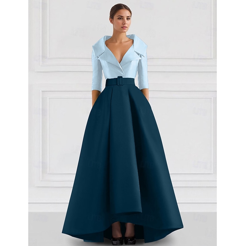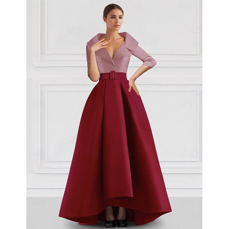 More information about Red A-Line Satin Formal Evening Gown Elegant Fall Wedding Guest Dress Tuxedo Dress Asymmetrical 3/4 Length Sleeve Shirt Collar with Pocket