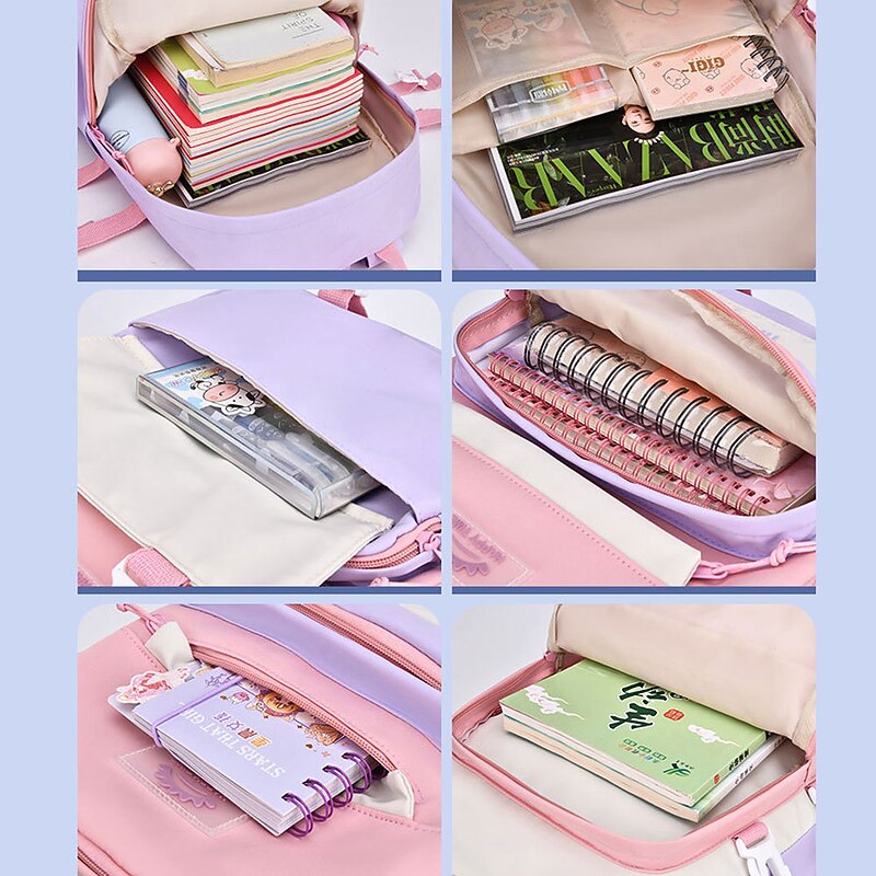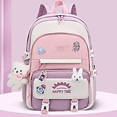More information about Girls' Waterproof School Backpack with Cute Bear Pendant and Cartoon Patches – Lightweight Bookbag for Elementary or Middle School Students