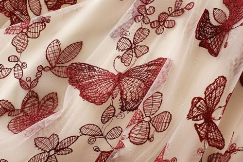 More information about Womens Vintage Tulle Skirt Butterfly Embroidered Midi Skirt High Waist Pleated A-line Skirts Cocktail Swing Skirt