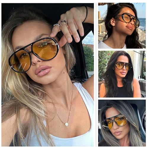 • 【SUITABLE MANY OCCASIONS】 These oversized aviator sunglasses are seen on many trendsetters and can add a touch of sophistication and elegance to any of your outfits. They have a retro style and are suitable for both men and women. They are the perfect accessory for any occasion, whether it is a casual trip or a grand event.