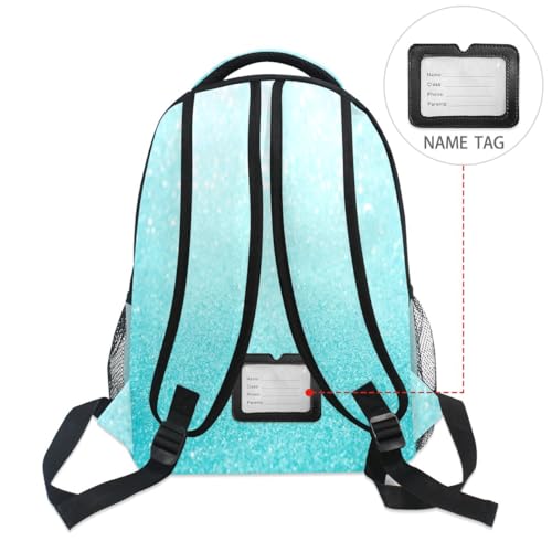 GAIGEO White Blue Gradient Glitter School Backpack, Heavy Duty 18L Girls School Backpacks, Name Tag Adjustable Straps Hand Wash, M 3