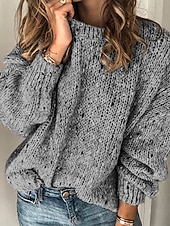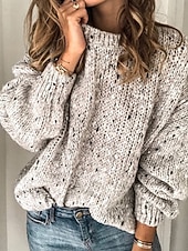 More information about Women's Sweater Pullover Streetwear Casual Solid Color Crew Neck Knitted Long Sleeve Regular Tops Knit Daily Going out Weekend Light Grey Dark Gray Fall Winter