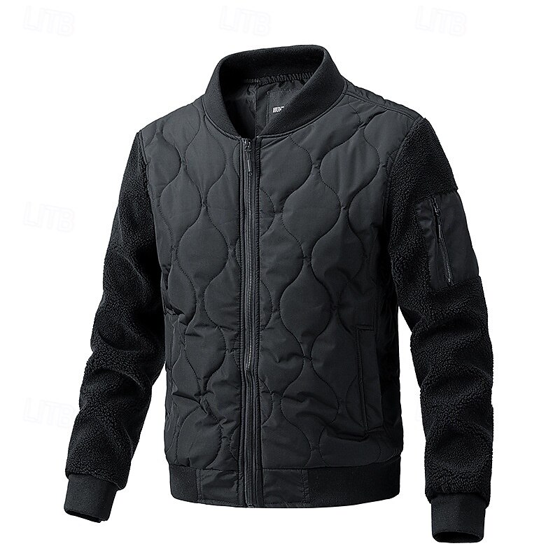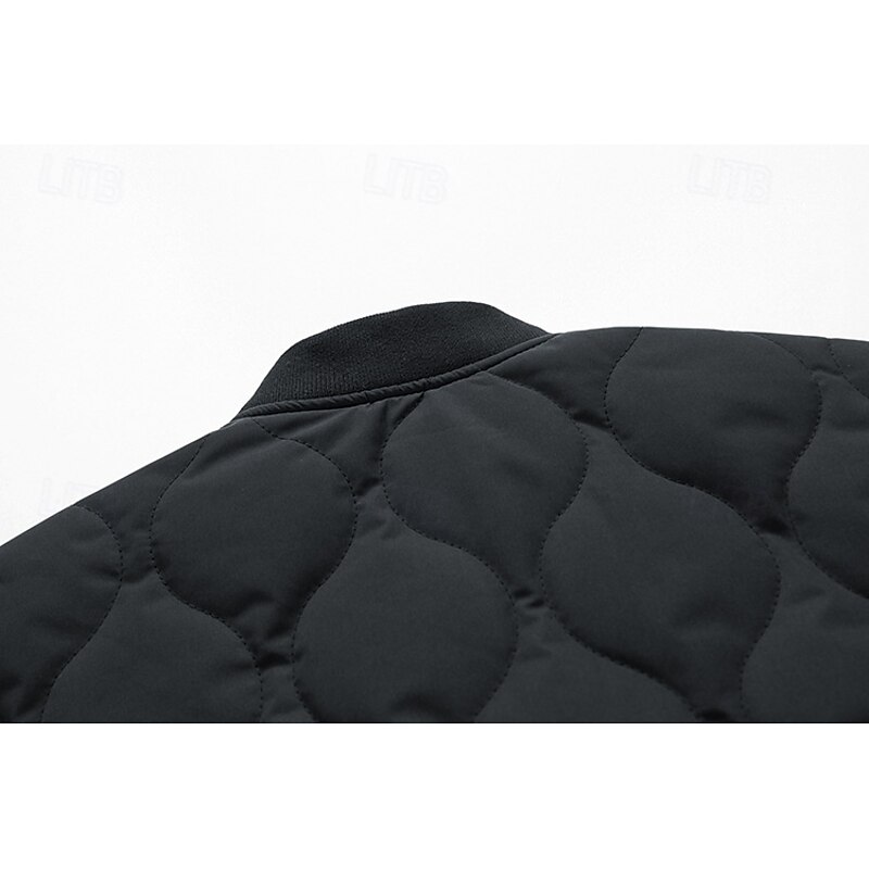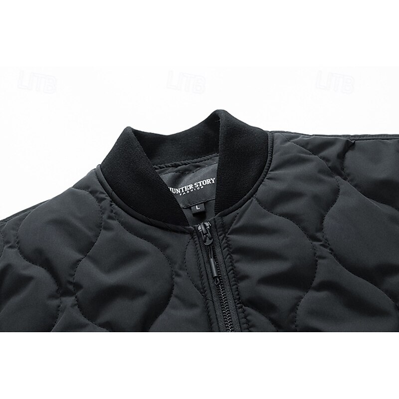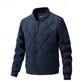 More information about Men's Outdoor Jacket Quilted Jacket Padded Formal Home Windbreaker Pocket Fall Winter Solid Color Active Neutral Shirt Collar Regular Black Navy Blue Brown Green Khaki Jacket