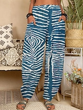 More information about Women's Chinos Pants Trousers Active Fashion Long High Waist Geometry Pocket Elastic Waist Printing Breathability Soft Micro-elastic Vacation Street Daily Wear Blue Spring Fall Regular Fit