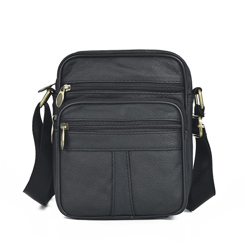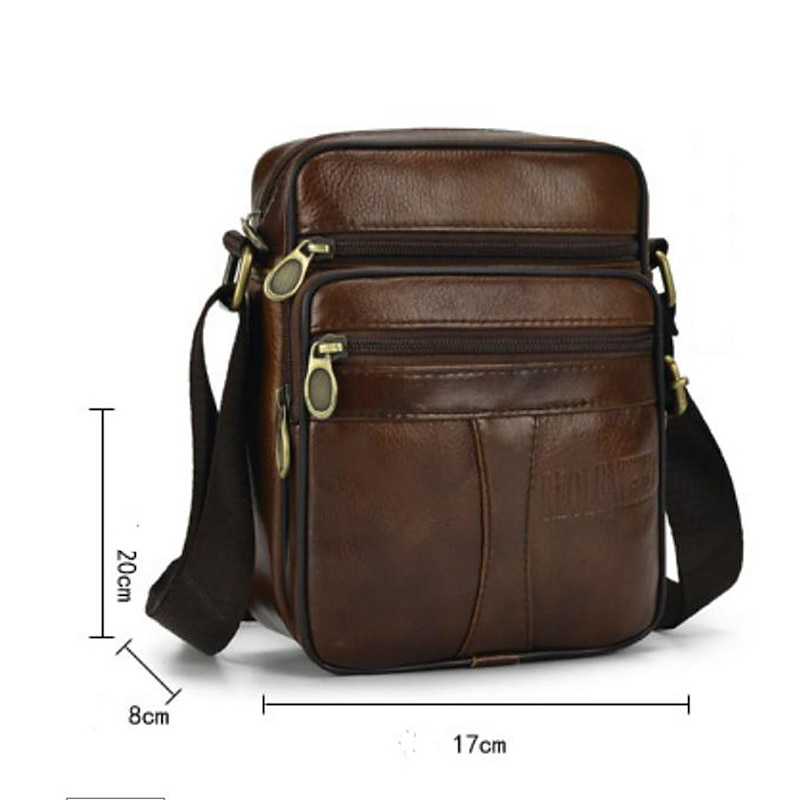 HOT ! Men's Brown Leather Crossbody Bag with Multiple Zipper Pockets and Adjustable Strap, Vintage Small Shoulder Bag for Travel, Work and Daily Use