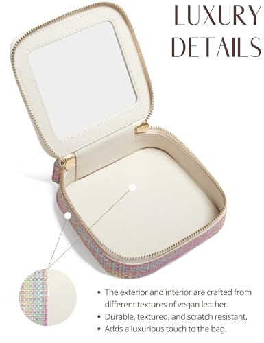 • [Mini but Mighty] – The pink mini makeup bag measures 5'' x 4.7'' x 2'' (12.7cm x 12cm x 5cm), perfect for holding daily mini essentials including lip balms, hair ties, jewelry, Air Pods, charging cords and medications. Slip it into your purse, backpack, everyday tote or travelling bag for easy access to your must-have items.