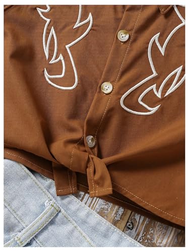 MakeMeChic Girl's Vest Top Sleeveless Button Down Collared Embroidery Vintage Cowgirl Summer Blouse Shirt 5