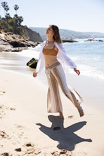 • FASHION DESIGN – Have some fun in the sun with these beach pants. It features an elastic smocked waistband with faux tassel drawcord, easy relaxed fitted wide pant legs, and side slits with featuring 2-ways to wear them tie them at bottom, or leave them open. The mid rise waist and loose flowy flared fit allow for full range of motion, providing comfort during wear. These stylish trousers are flattering with a sleek silhouette.