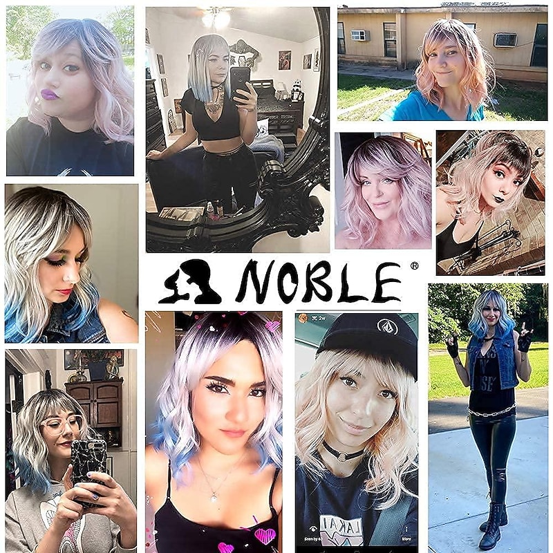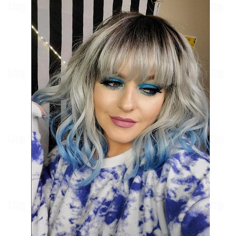 $21.99 - Blue Wig with Bangs Short Bob Curly Wigs for White Women Colorful Wavy Bob Wigs with Air Bangs Heat Resistant Synthetic Silver Blue Wigs for Daily Party Cosplay Costume Wigs 2025. Shop for cheap Synthetic Trendy Wigs online? Buy at lightinthebox.com on sale today!
