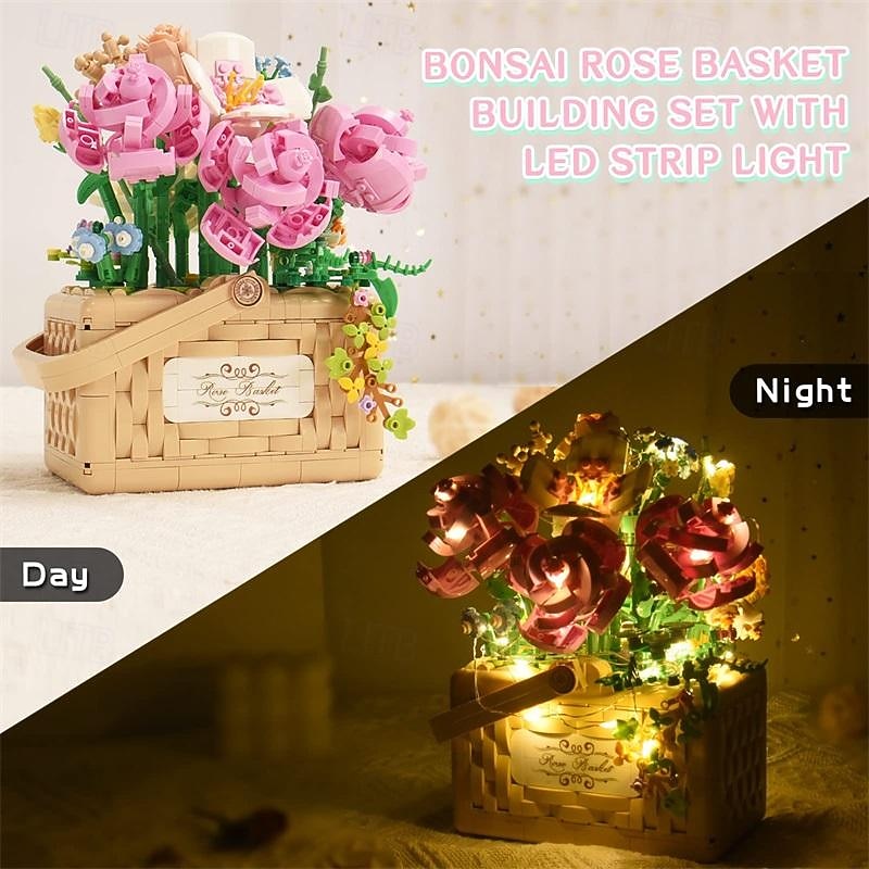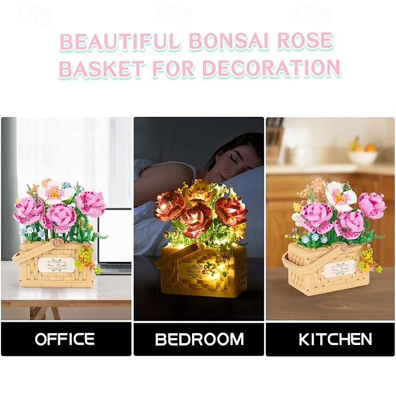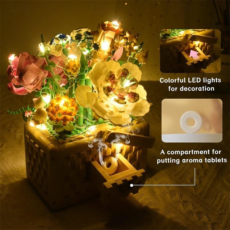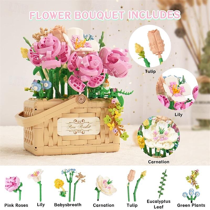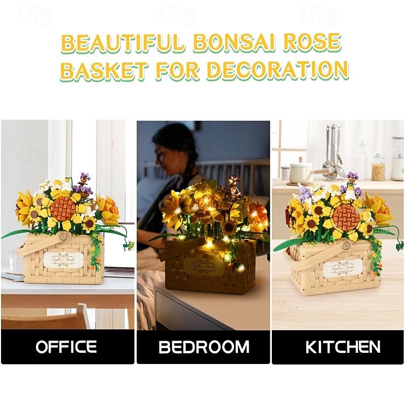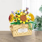 Women's Day Gifts Sunflower Hibiscus Eternal Flower Building Block Small Particle Puzzle Assembly Toy Potted Plant Decoration Couple Valentine's Day Gift Women's Day Mother's Day Gifts 10