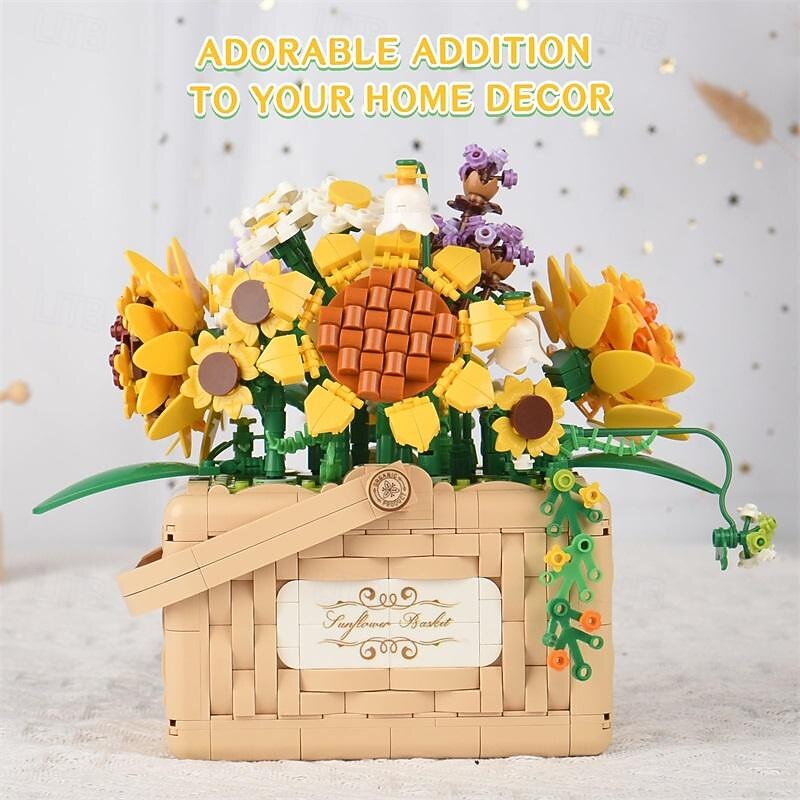 Women's Day Gifts Sunflower Hibiscus Eternal Flower Building Block Small Particle Puzzle Assembly Toy Potted Plant Decoration Couple Valentine's Day Gift Women's Day Mother's Day Gifts 2