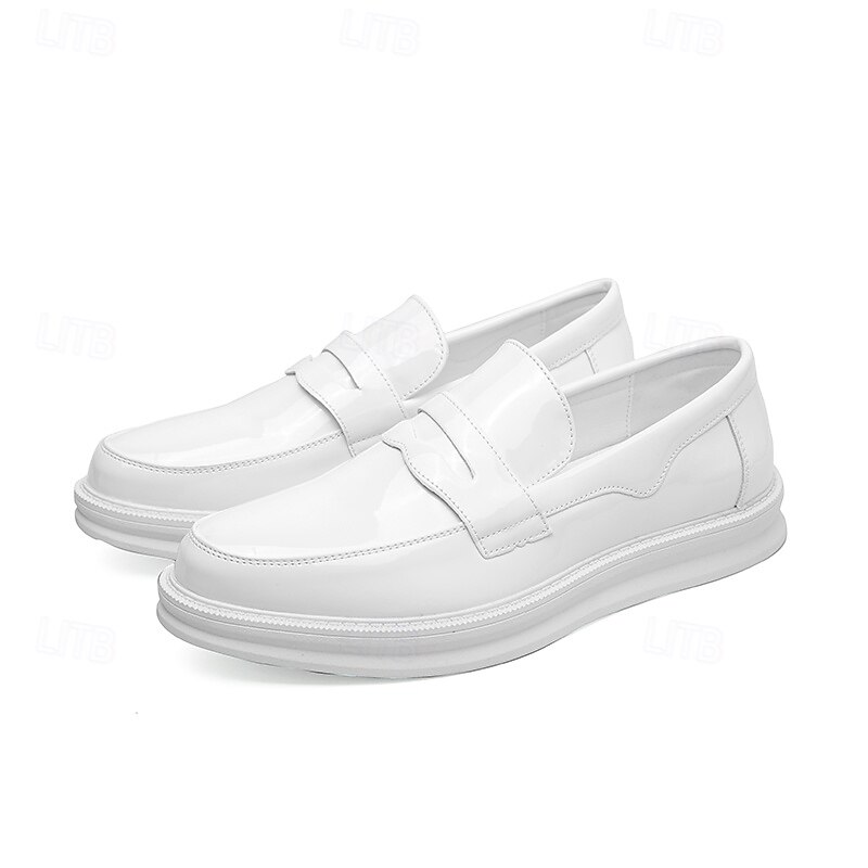 HOT ! Men's White Faux Leather Penny Loafers – Sleek Casual and Formal Shoes for Business, Parties, and Everyday Wear
