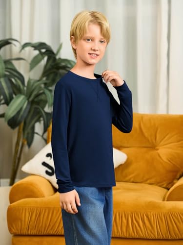 Haloumoning Boys Long Sleeve Shirts Kids Casual Crewneck Fall Tops Curve Hem Basic Tees 5-14Y 4